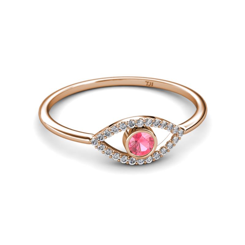 Round Pink Tourmaline and Diamond Womens Evil Eye Promise Ring 0.32 ctw 18K Rose Gold More Details ...