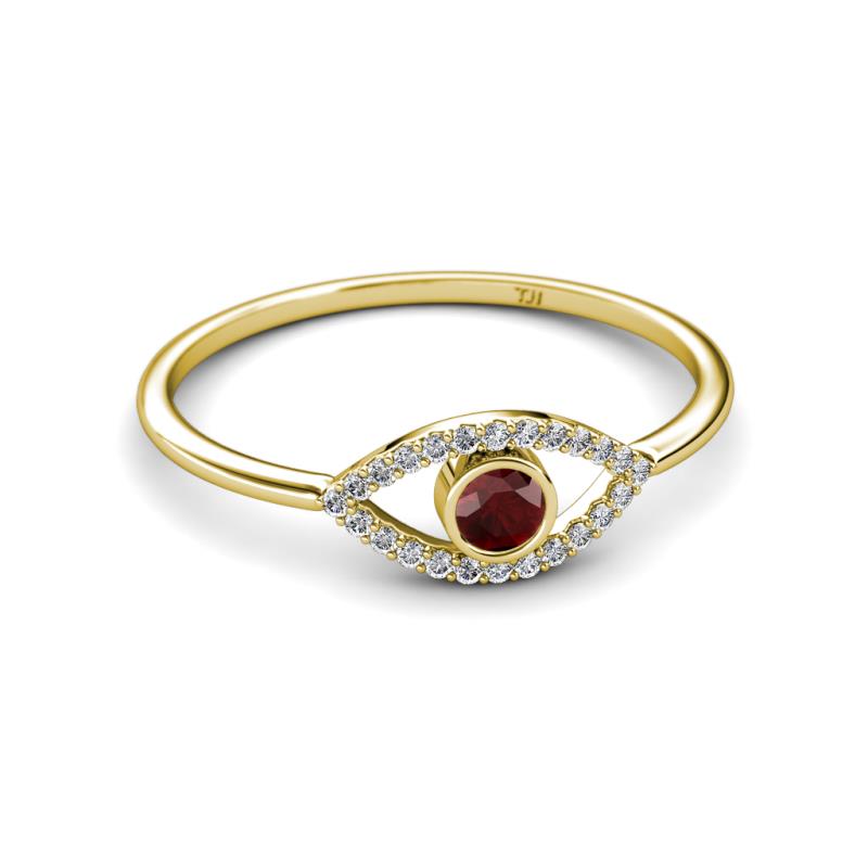 Round Red Garnet and Diamond Womens Evil Eye Promise Ring 0.35 ctw 18K Yellow Gold More Details ...