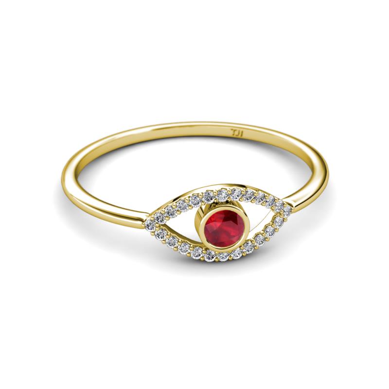 Round Ruby and Diamond Womens Evil Eye Promise Ring 0.34 ctw 18K Yellow Gold More Details ...