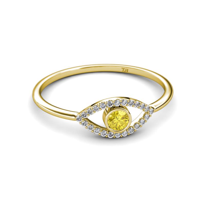 Round Yellow Sapphire and Diamond Womens Evil Eye Promise Ring 0.34 ctw 18K Yellow Gold More Details ...
