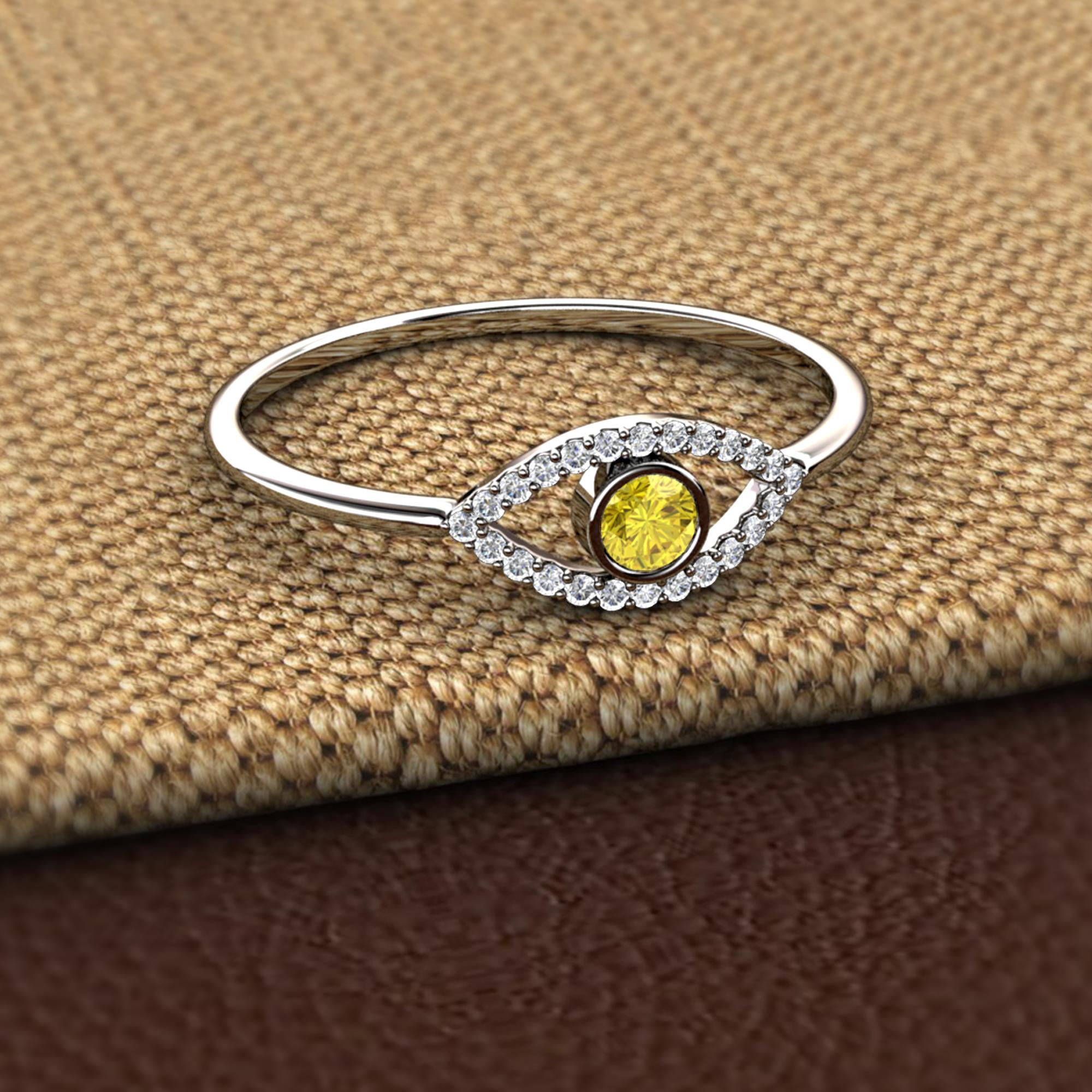 Round Yellow Sapphire and Diamond Womens Evil Eye Promise Ring 0.34 ctw Platinum More Details ...