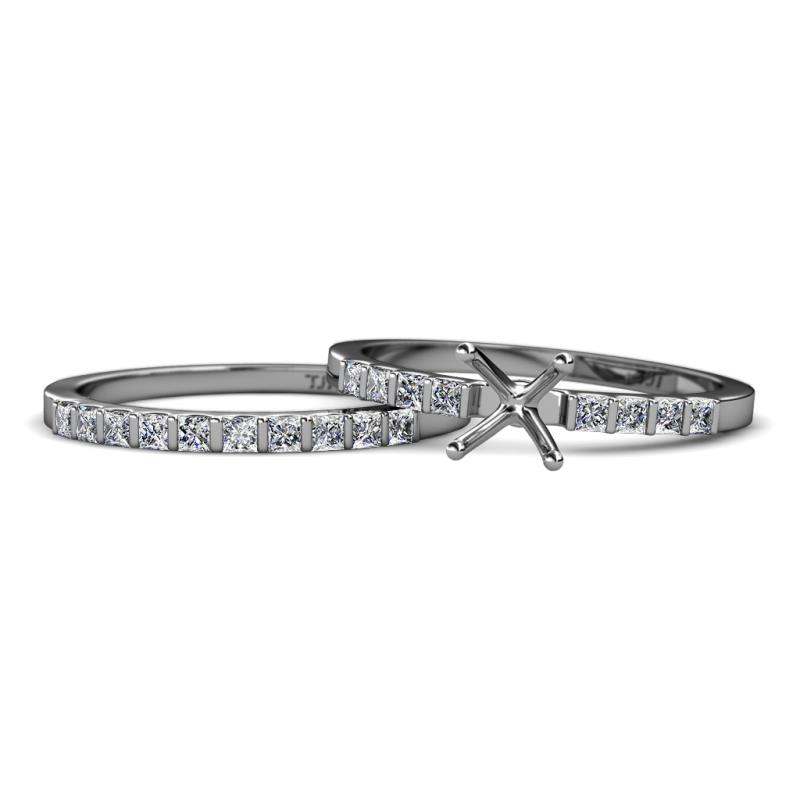 Diamond Four Prong Semi Mount Engagement Ring Setting & Matching Diamond Band 0.55 ctw 14K White Gold More Details ...
