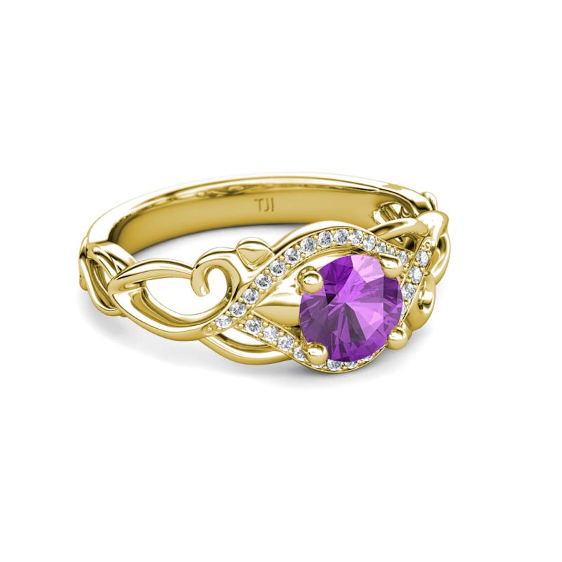1 ctw Round Amethyst and Diamond Swirl Womens Engagement Ring 14K Yellow Gold More Details ...