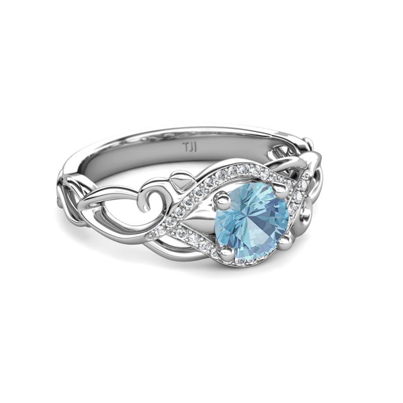 1 ctw Round Aquamarine and Diamond Swirl Womens Engagement Ring 18K White Gold More Details ...