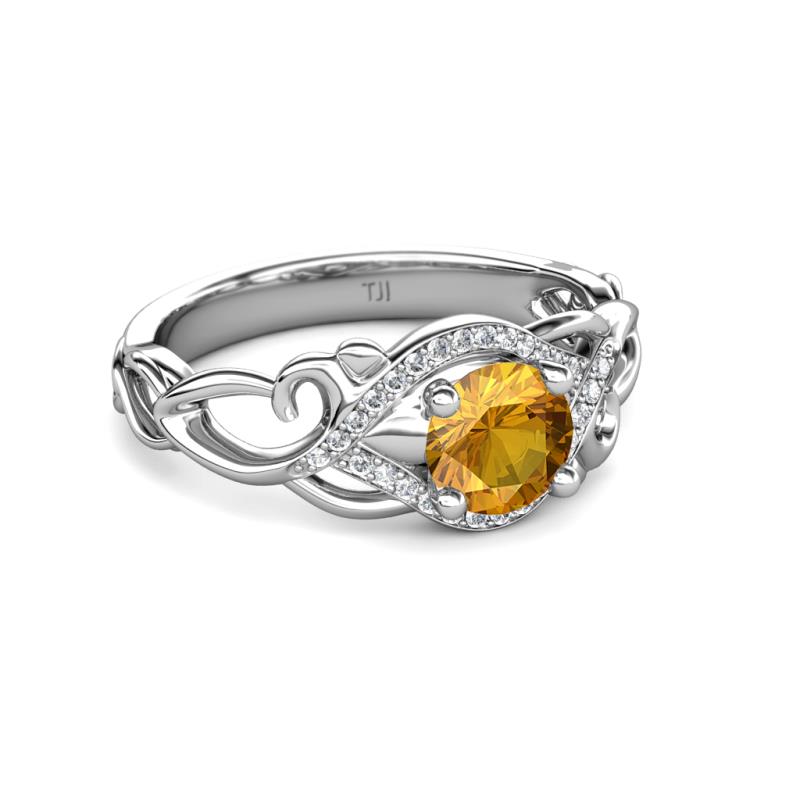 1 ctw Round Citrine and Diamond Swirl Womens Engagement Ring Platinum More Details ...