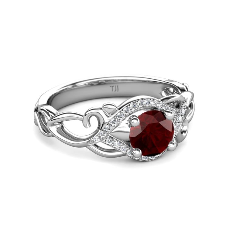 1 1/4 ctw Round Red Garnet and Diamond Swirl Womens Engagement Ring 14K White Gold More Details ...