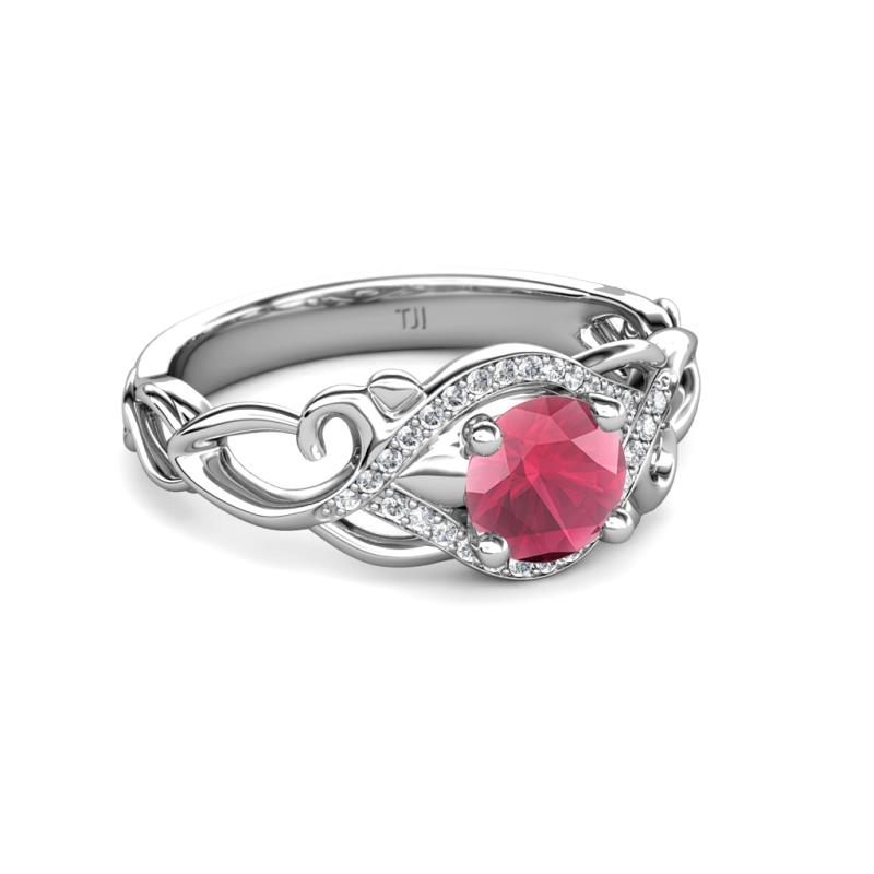 1 1/6 ctw Round Rhodolite Garnet and Diamond Swirl Womens Engagement Ring Platinum More Details ...