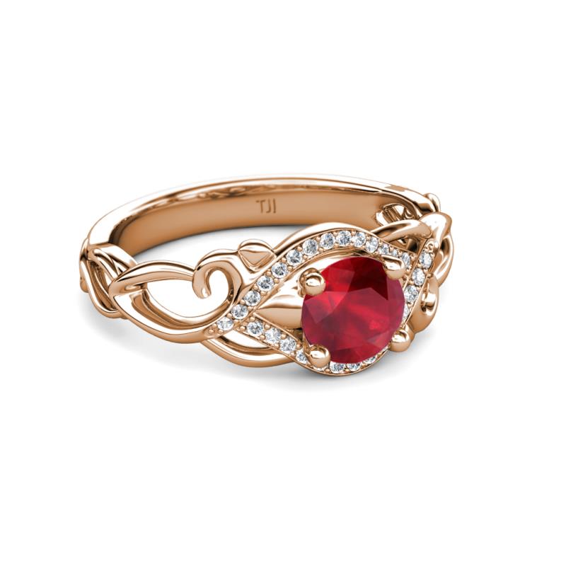 1 1/8 ctw Round Ruby and Diamond Swirl Womens Engagement Ring 14K Rose Gold More Details ...