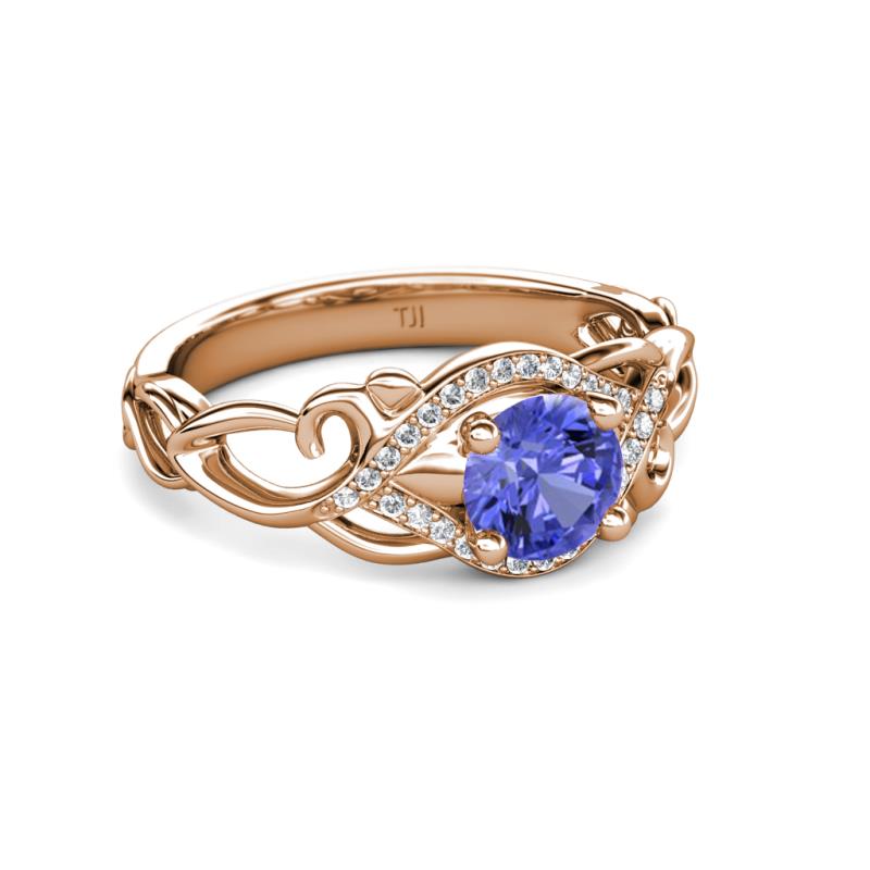 1 ctw Round Tanzanite and Diamond Swirl Womens Engagement Ring 14K Rose Gold More Details ...
