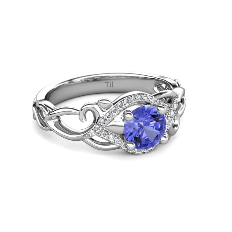 1 ctw Round Tanzanite and Diamond Swirl Womens Engagement Ring 18K White Gold More Details ...