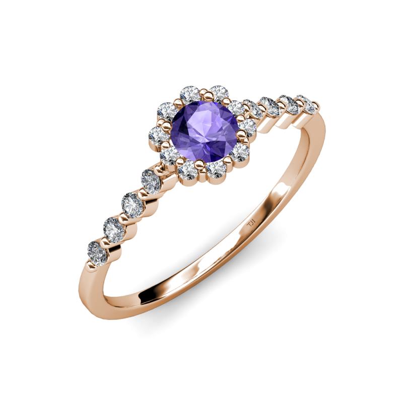 Iolite and Diamond Floral Womens Halo Engagement Ring 1.02 ctw 14K Rose Gold More Details ...