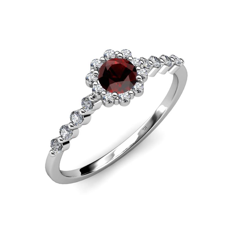 Red Garnet and Diamond Floral Womens Halo Engagement Ring 1.11 ctw 18K White Gold More Details ...