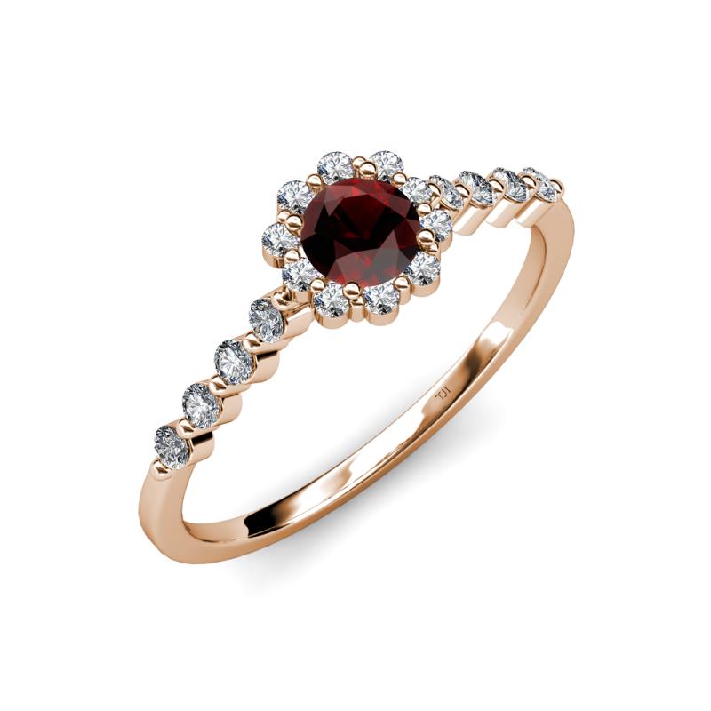 Red Garnet and Diamond Floral Womens Halo Engagement Ring 1.11 ctw 18K Rose Gold More Details ...