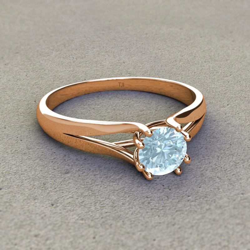 Propose to the one you Love with this 0.87 ct Solitaire Ring in which the 8 prong adorably holds a Aquamarine with the beautiful split shank of the Ring making it an ultimate expression of Love.