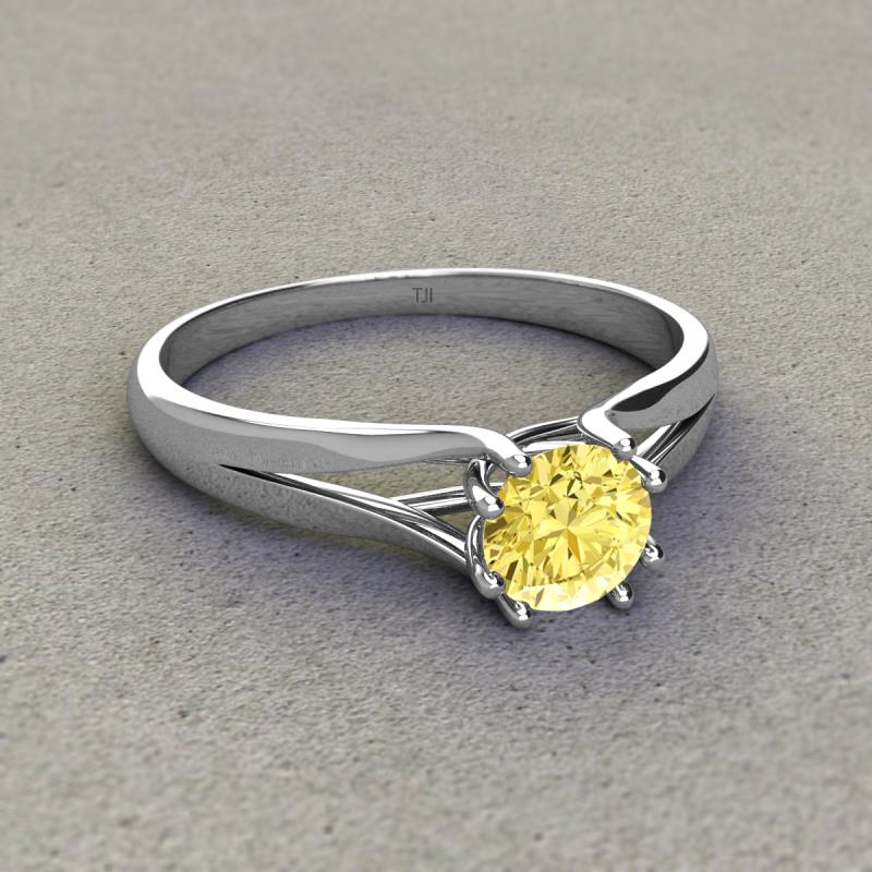 Propose to the one you Love with this 0.95 ct Solitaire Ring in which the 8 prong adorably holds a Lab Created Yellow Sapphire with the beautiful split shank of the Ring making it an ultimate expression of Love.