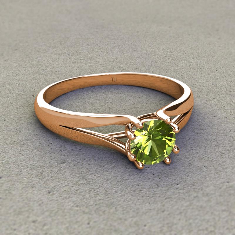 Propose to the one you Love with this 1.10 ct Solitaire Ring in which the 8 prong adorably holds a Peridot with the beautiful split shank of the Ring making it an ultimate expression of Love.