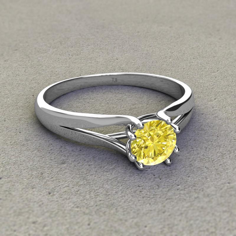 Propose to the one you Love with this 0.80 ct Solitaire Ring in which the 8 prong adorably holds a Yellow Diamond with the beautiful split shank of the Ring making it an ultimate expression of Love.