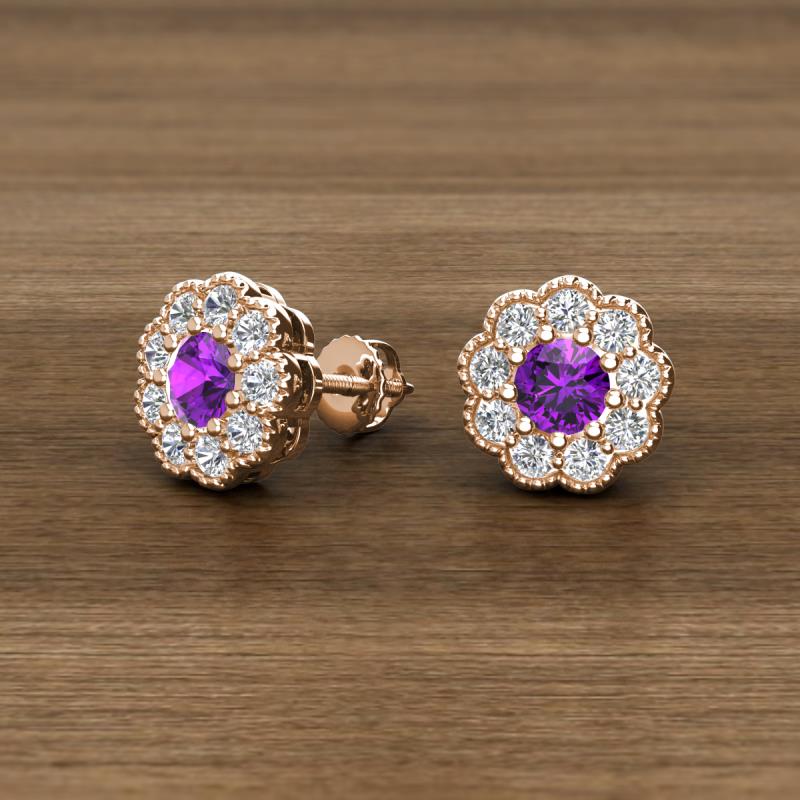 Round Amethyst and Diamond 0.85 ctw* Womens Milgrain Halo Stud Earrings 10K Rose Gold More Details ...