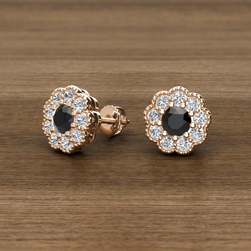 Round Black and White Diamond 0.99 ctw* Womens Milgrain Halo Stud Earrings 14K Rose Gold More Details ...