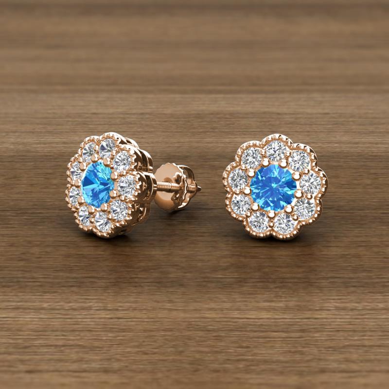 Round Blue Topaz and Lab Grown Diamond 0.89 ctw* Womens Milgrain Halo Stud Earrings 14K Rose Gold More Details ...