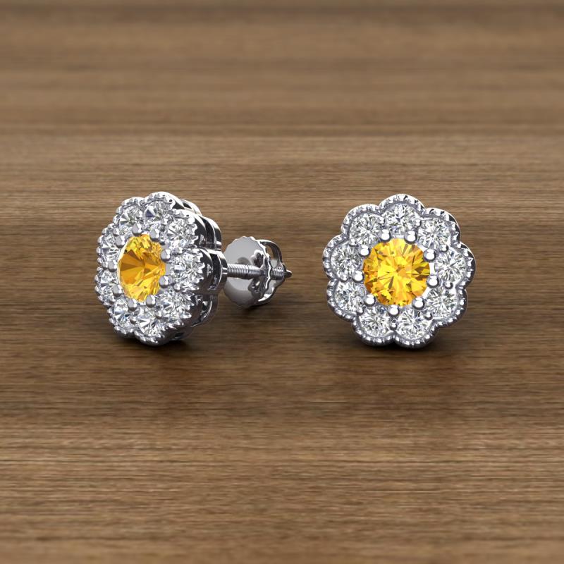 Round Citrine and Lab Grown Diamond 0.85 ctw* Womens Milgrain Halo Stud Earrings 14K White Gold More Details ...