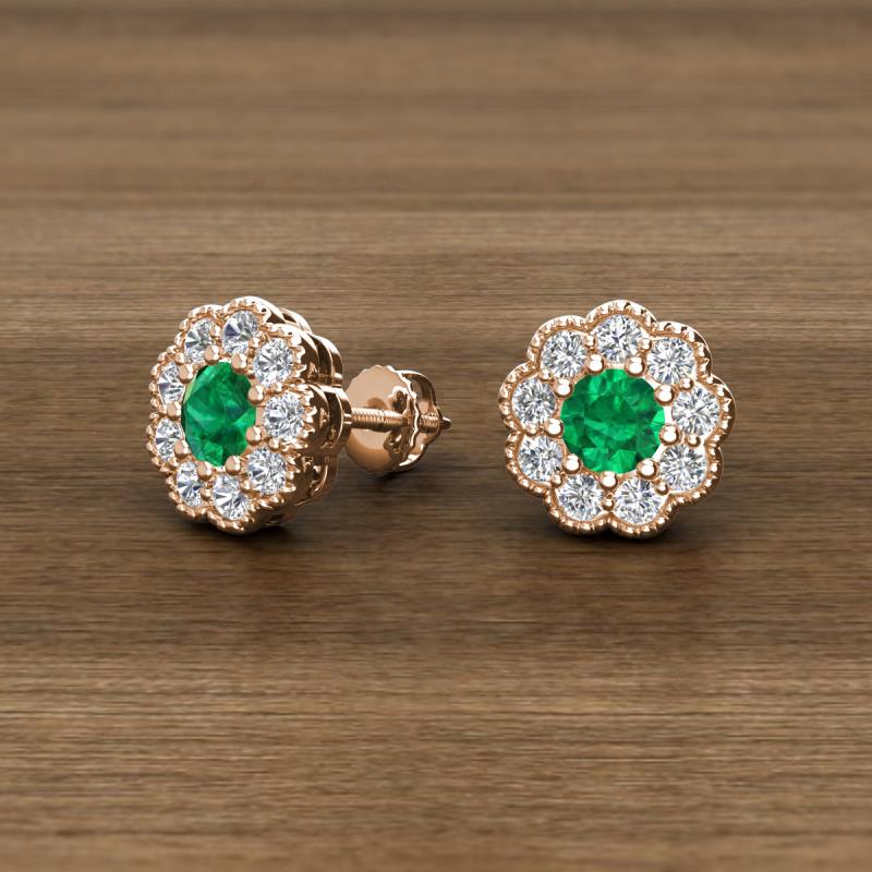 Round Emerald and Lab Grown Diamond 0.85 ctw* Womens Milgrain Halo Stud Earrings 10K Rose Gold More Details ...