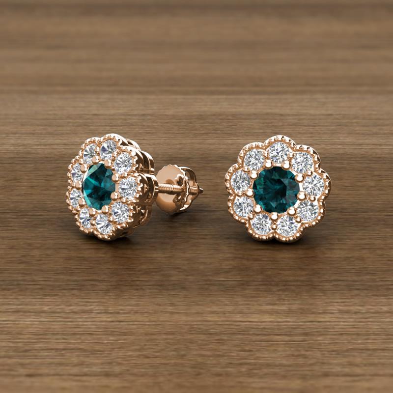 Round London Blue Topaz and Diamond 0.95 ctw* Womens Milgrain Halo Stud Earrings 14K Rose Gold More Details ...