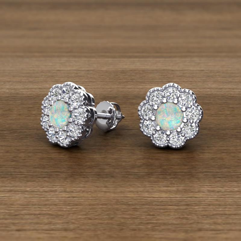 Round Opal and Diamond 0.85 ctw* Womens Milgrain Halo Stud Earrings 14K White Gold More Details ...