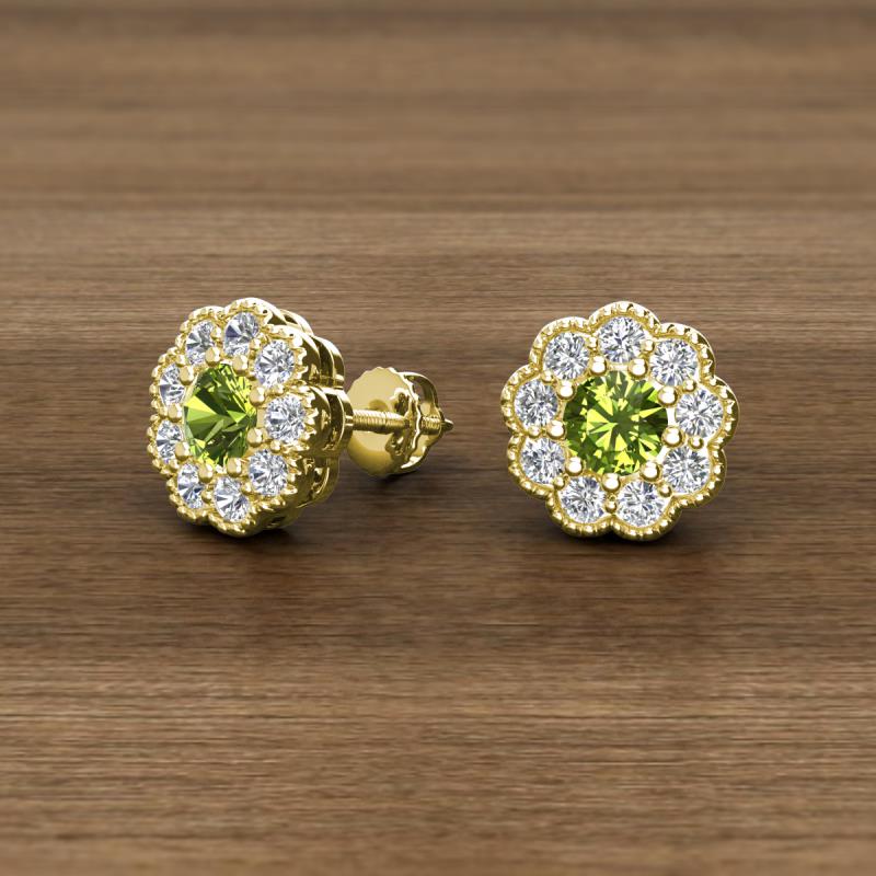 Round Peridot and Diamond 1.08 ctw* Womens Milgrain Halo Stud Earrings 10K Yellow Gold More Details ...