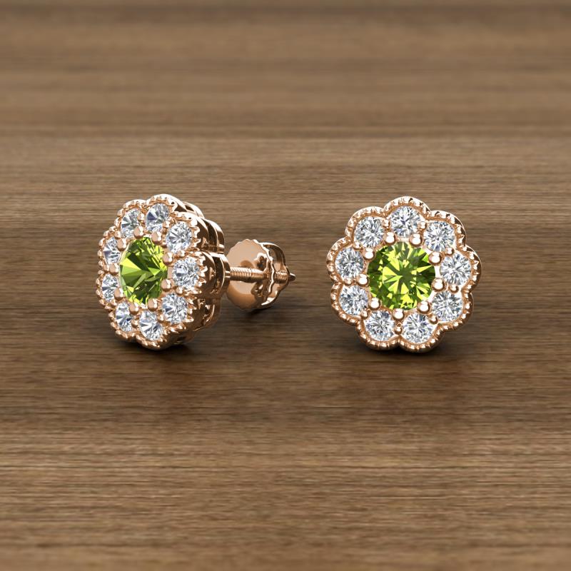Round Peridot and Lab Grown Diamond 1.08 ctw* Womens Milgrain Halo Stud Earrings 10K Rose Gold More Details ...