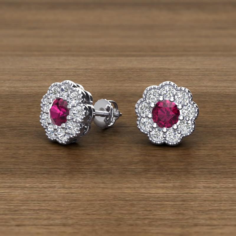 Round Rhodolite Garnet and Diamond 1.08 ctw* Womens Milgrain Halo Stud Earrings 10K White Gold More Details ...