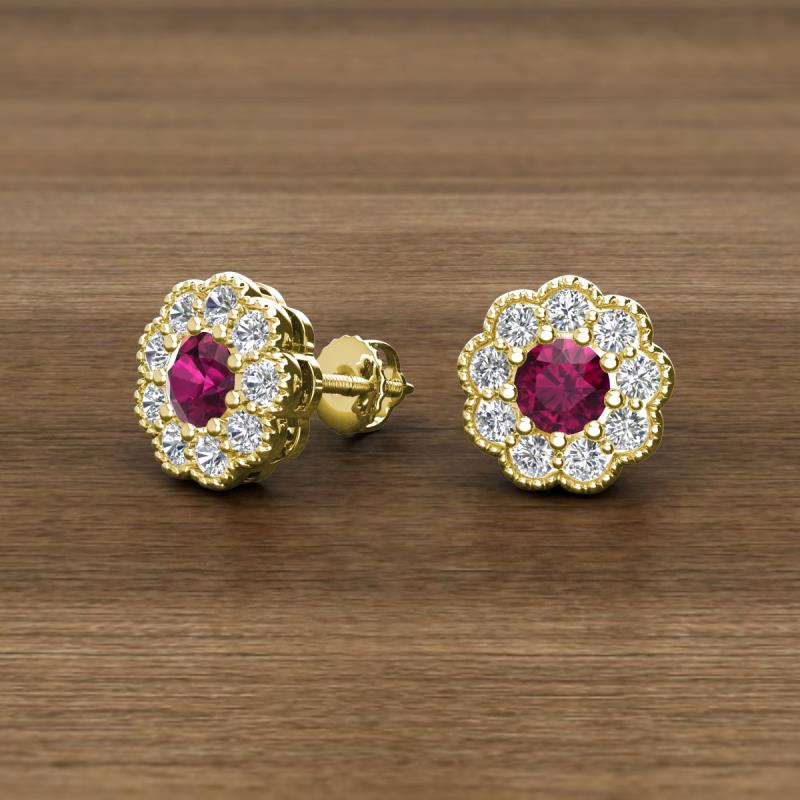 Round Rhodolite Garnet and Lab Grown Diamond 1.08 ctw* Womens Milgrain Halo Stud Earrings 14K Yellow Gold More Details ...