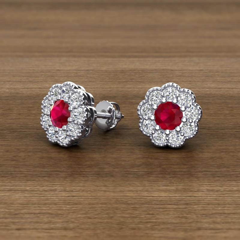 Round Ruby and Lab Grown Diamond 0.97 ctw* Womens Milgrain Halo Stud Earrings 10K White Gold More Details ...
