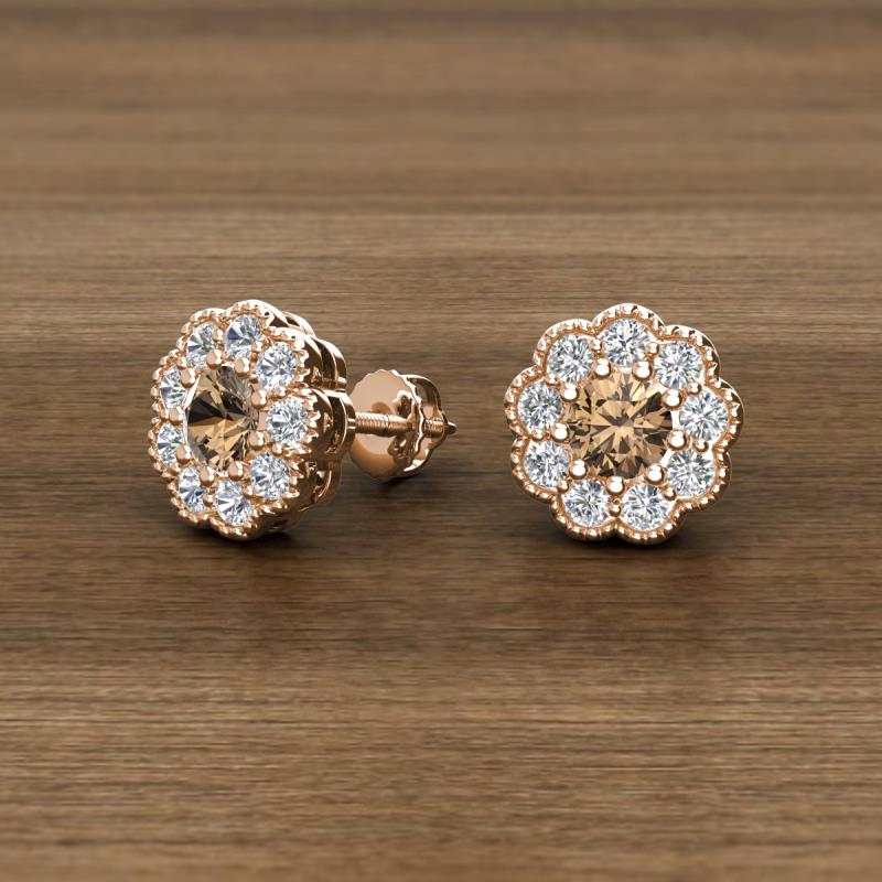 Round Smoky Quartz and Diamond 0.93 ctw* Womens Milgrain Halo Stud Earrings 14K Rose Gold More Details ...