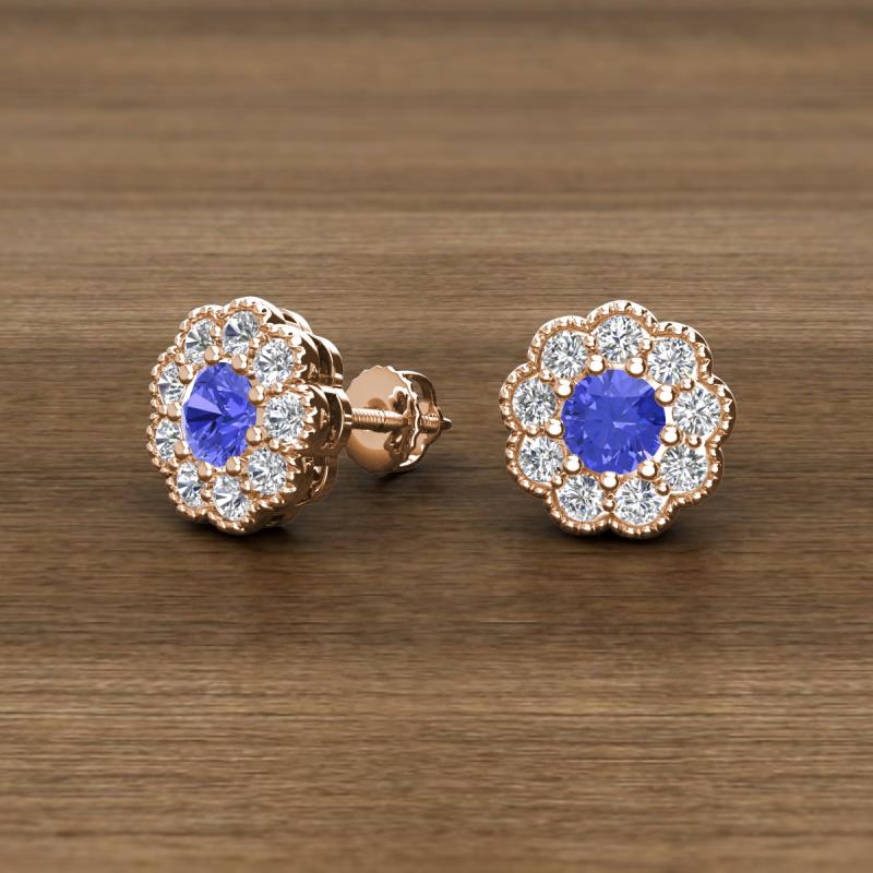 Round Tanzanite and Lab Grown Diamond 0.93 ctw* Womens Milgrain Halo Stud Earrings 14K Rose Gold More Details ...