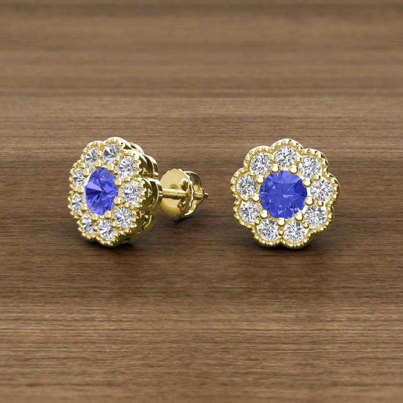 Round Tanzanite and Lab Grown Diamond 0.93 ctw* Womens Milgrain Halo Stud Earrings 10K Yellow Gold More Details ...