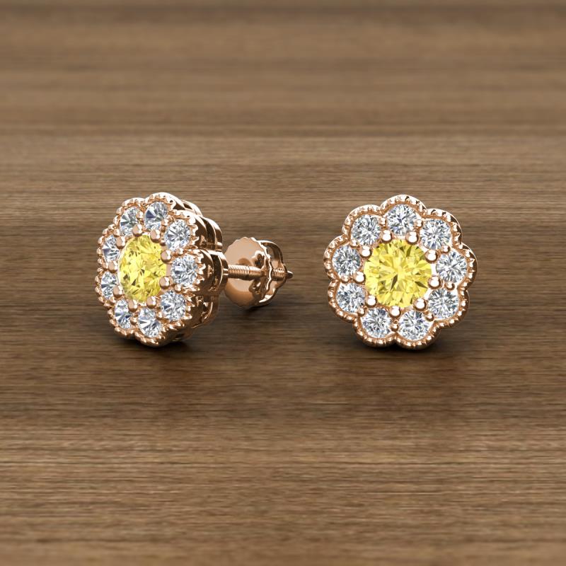 Round Yellow Sapphire and Diamond 0.98 ctw* Womens Milgrain Halo Stud Earrings 14K Rose Gold More Details ...