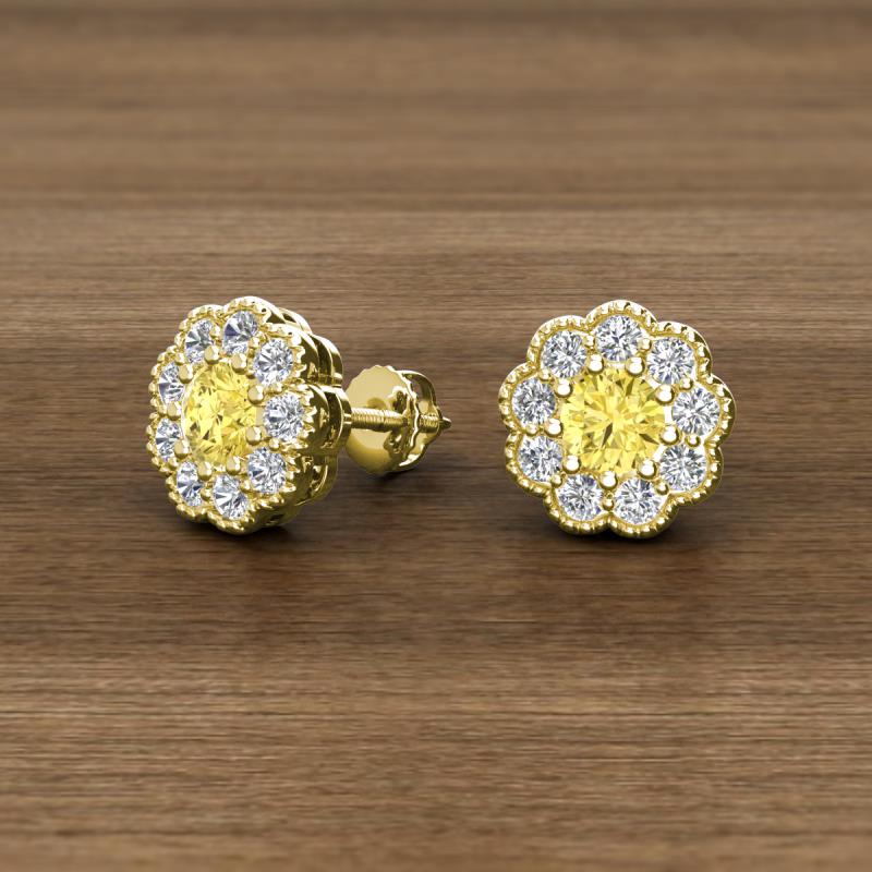 Round Yellow Sapphire and Lab Grown Diamond 0.98 ctw* Womens Milgrain Halo Stud Earrings 10K Yellow Gold More Details ...
