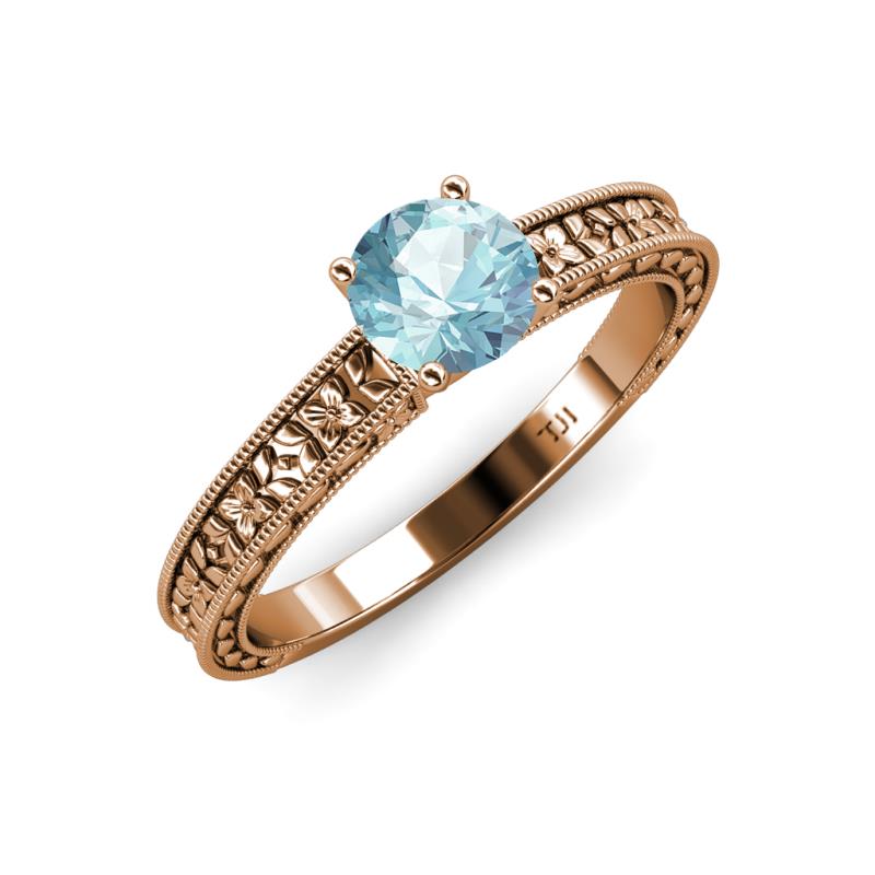 Round (6.50 mm) Aquamarine 0.87 ct Floral Engraved Milgrain Womens Solitaire Engagement Ring 18K Rose Gold More Details ...