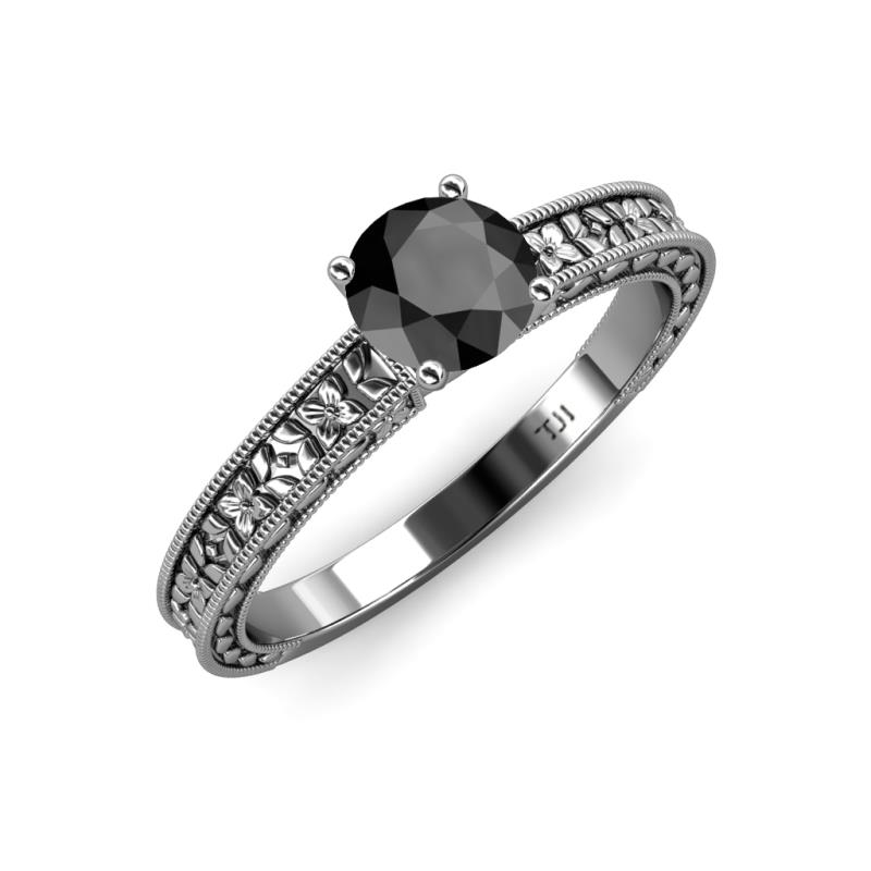Round (6.00 mm) Black Diamond 1.00 ct Floral Engraved Milgrain Womens Solitaire Engagement Ring 14K White Gold More Details ...