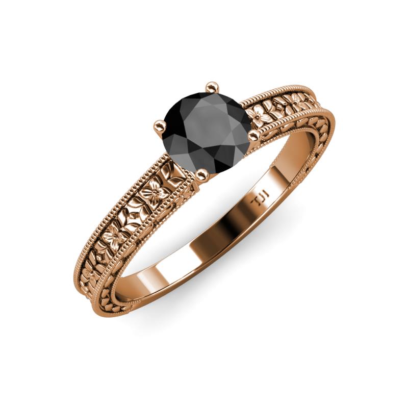 Round (6.00 mm) Black Diamond 1.00 ct Floral Engraved Milgrain Womens Solitaire Engagement Ring 18K Rose Gold More Details ...
