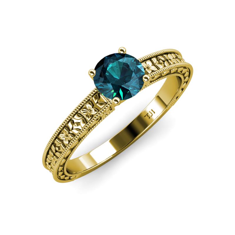 Round (6.00 mm) Blue Diamond 0.90 ct Floral Engraved Milgrain Womens Solitaire Engagement Ring 18K Yellow Gold More Details ...