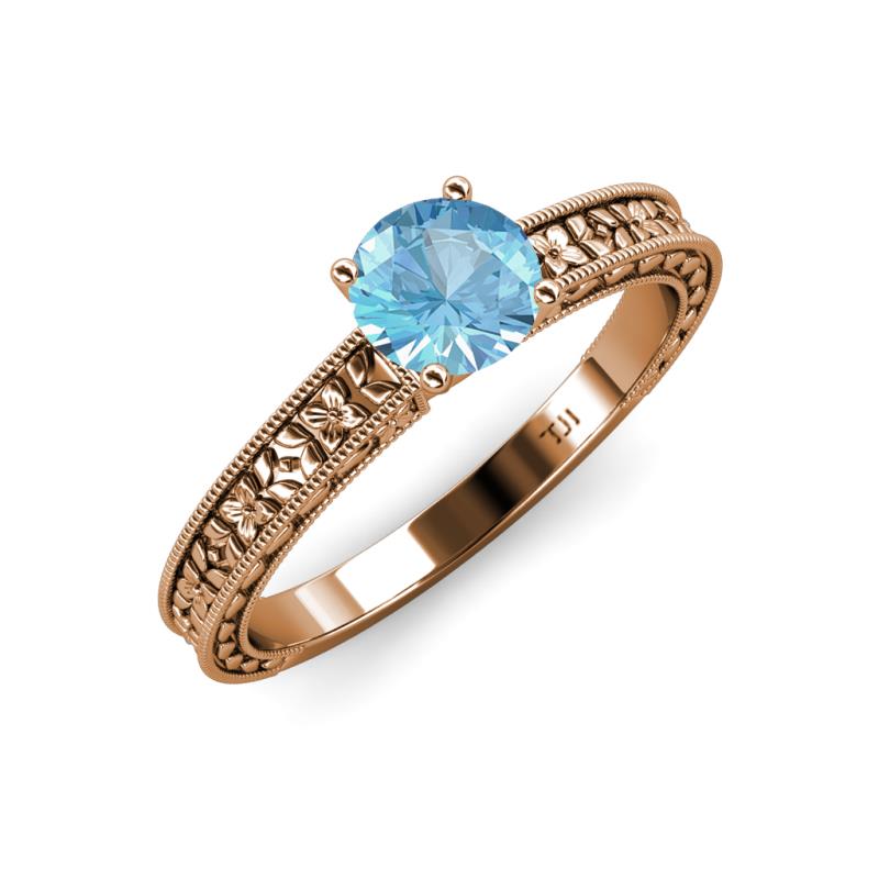 Round (6.50 mm) Blue Topaz 0.95 ct Floral Engraved Milgrain Womens Solitaire Engagement Ring 14K Rose Gold More Details ...