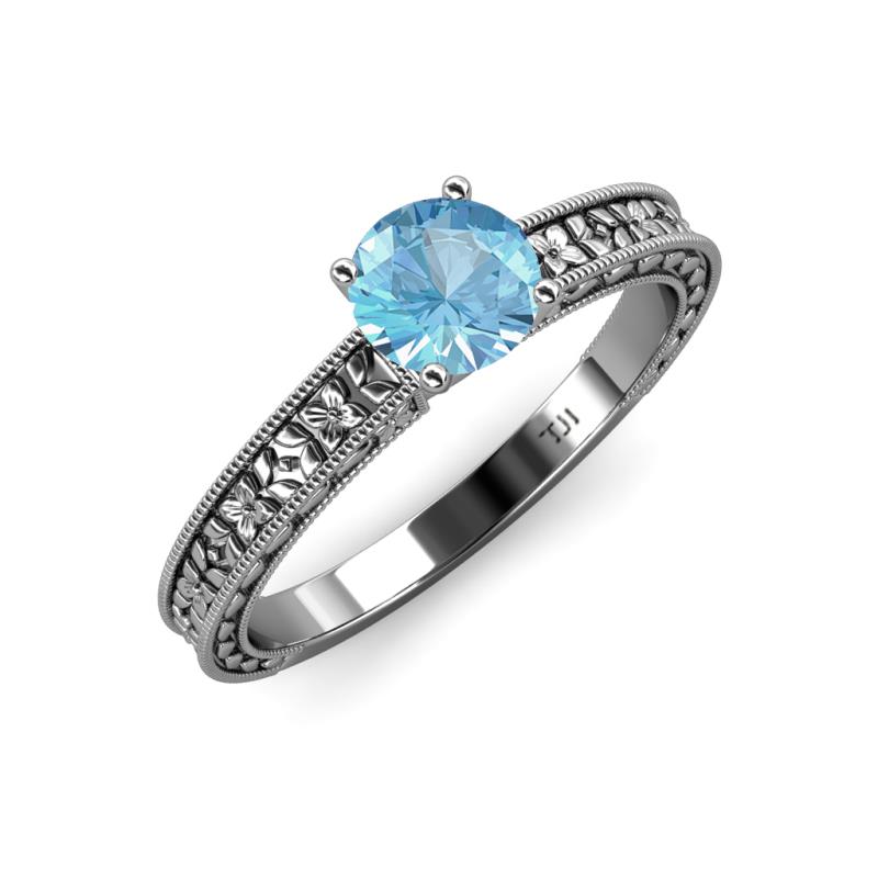 Round (6.50 mm) Blue Topaz 0.95 ct Floral Engraved Milgrain Womens Solitaire Engagement Ring Platinum More Details ...