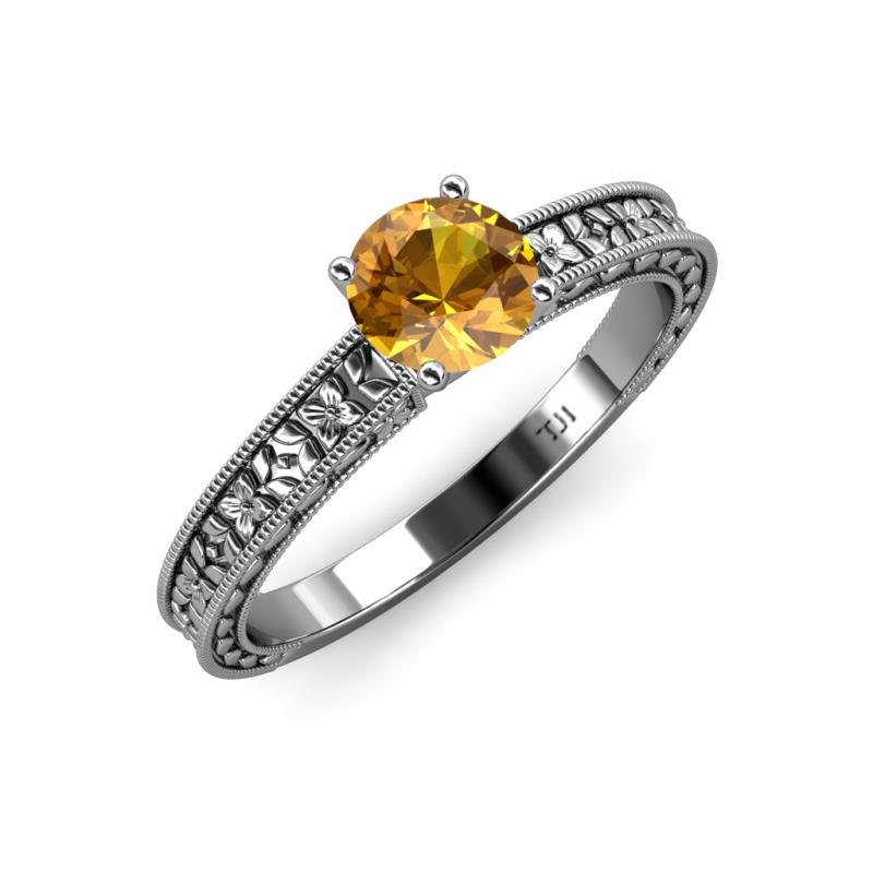 Round (6.50 mm) Citrine 0.87 ct Floral Engraved Milgrain Womens Solitaire Engagement Ring 18K White Gold More Details ...