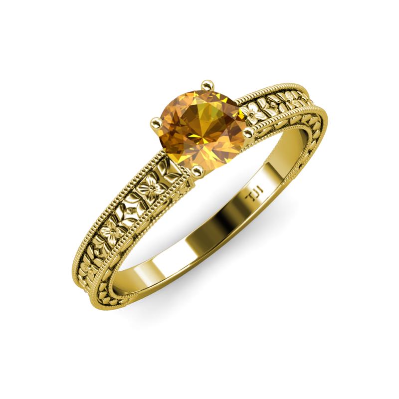 Round (6.50 mm) Citrine 0.87 ct Floral Engraved Milgrain Womens Solitaire Engagement Ring 18K Yellow Gold More Details ...