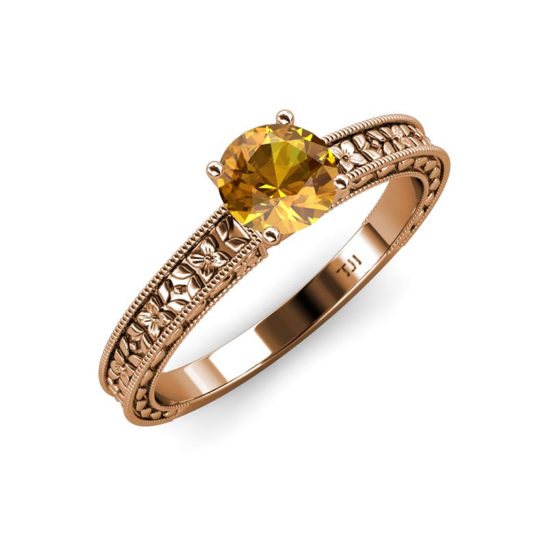 Round (6.50 mm) Citrine 0.87 ct Floral Engraved Milgrain Womens Solitaire Engagement Ring 18K Rose Gold More Details ...