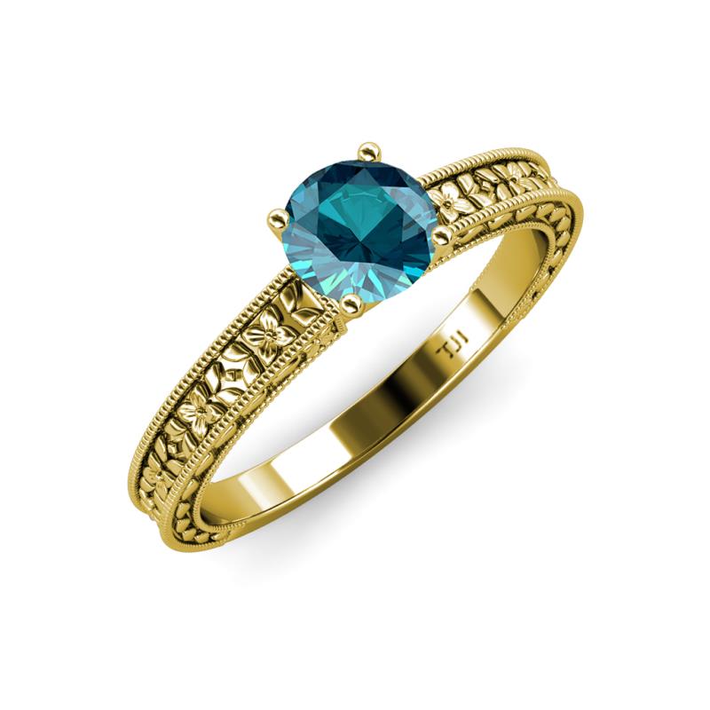 Round (6.50 mm) London Blue Topaz 0.95 ct Floral Engraved Milgrain Womens Solitaire Engagement Ring 18K Yellow Gold More Details ...