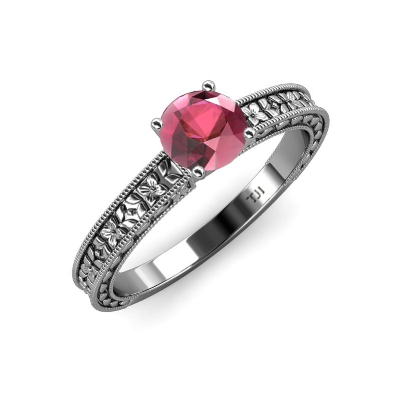 Round (6.50 mm) Rhodolite Garnet 1.00 ct Floral Engraved Milgrain Womens Solitaire Engagement Ring 14K White Gold More Details ...