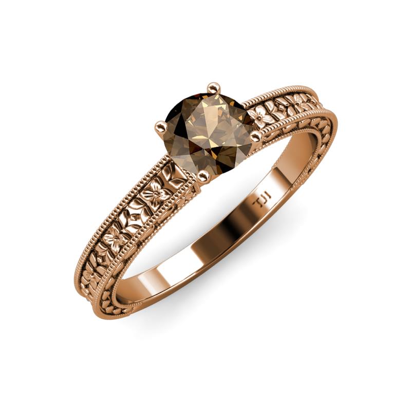 Round (6.50 mm) Smoky Quartz 1.00 ct Floral Engraved Milgrain Womens Solitaire Engagement Ring 18K Rose Gold More Details ...